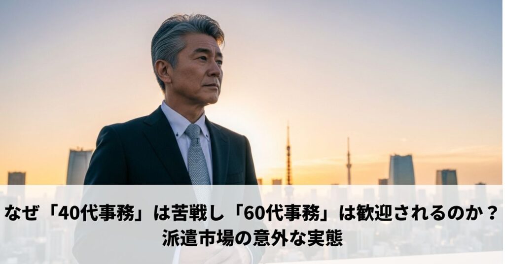 今回は、シニア派遣市場の調査レポートをもとに、なぜ今、60代の事務職需要が高まっているのか、そして40代が直面する課題とは何が違うのかについて解説します。