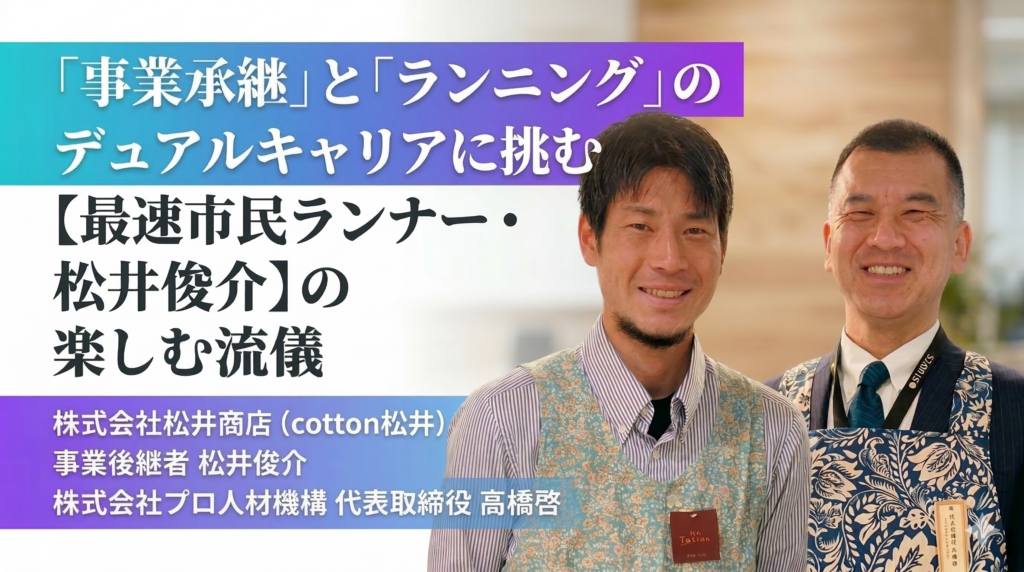 今回は、プロ人材機構代表・高橋啓が、松井さんのランニング哲学と、そこから見える事業承継への想いを深掘りしました。